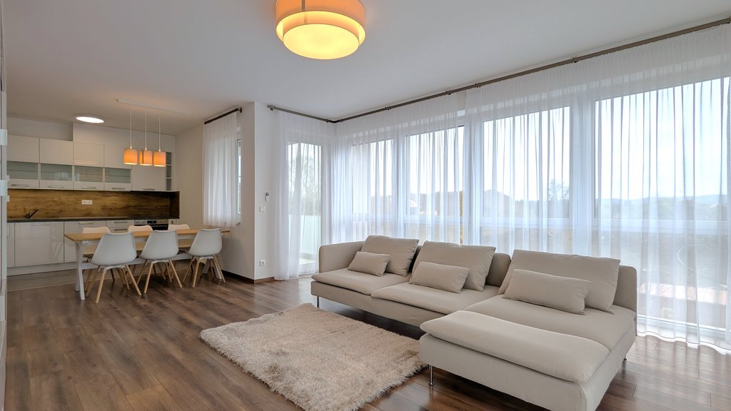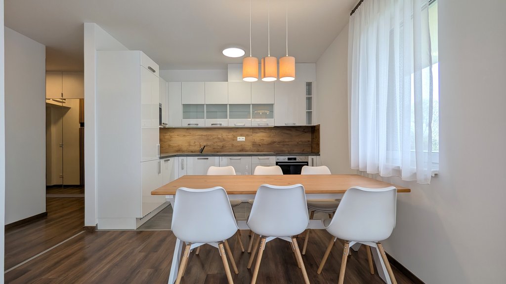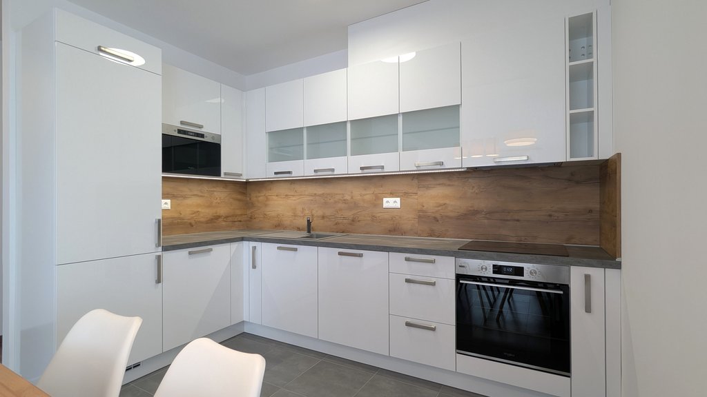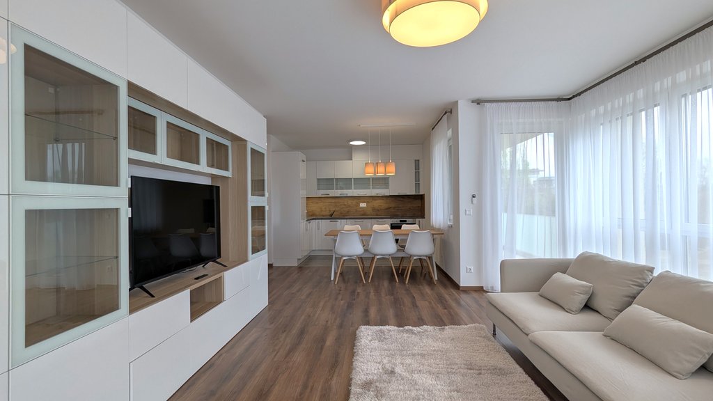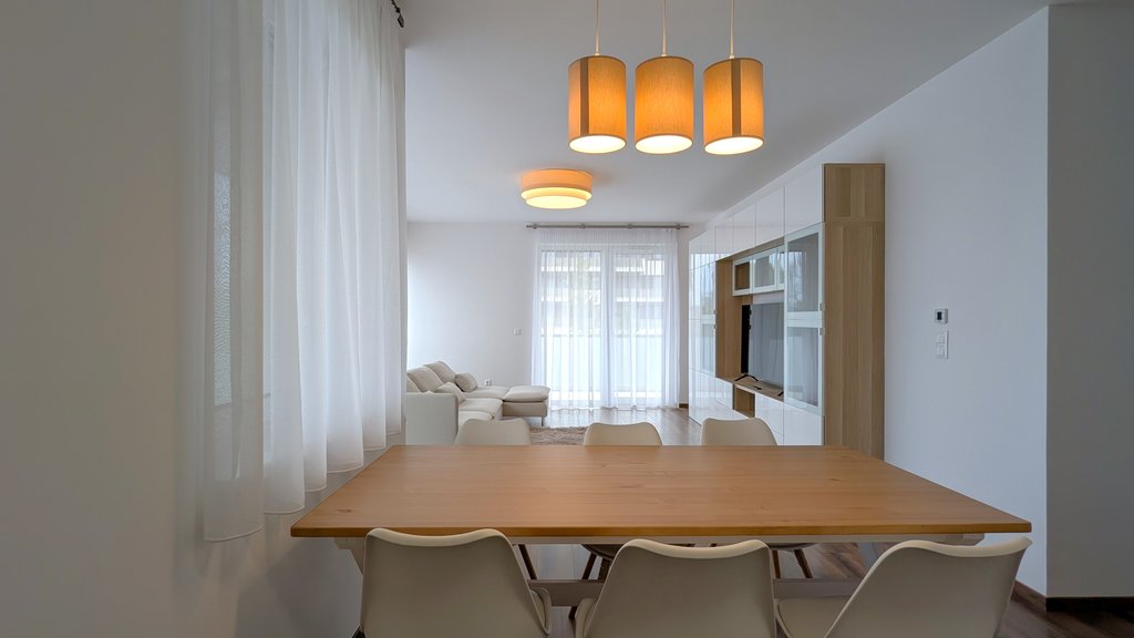 In the 11sth district, a modern, new, waiting for its new tenant- apartment is for rent. The 108 sqm, 1st floor property consists of 3 bedrooms, an open-style kitchen with a dining area and living room, two bathrooms (one with a shower, one with a bathtub), and a 24 sqm terrace. The property is air-conditioned and two cars can park in the underground garage. Electrical shutters are installed on all windows. The monthly rental fee of th egarages and th estorage is HUF 100.000.
