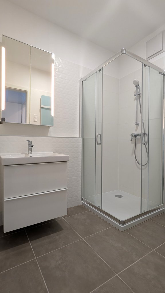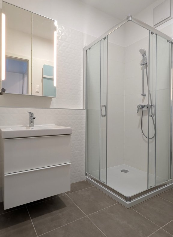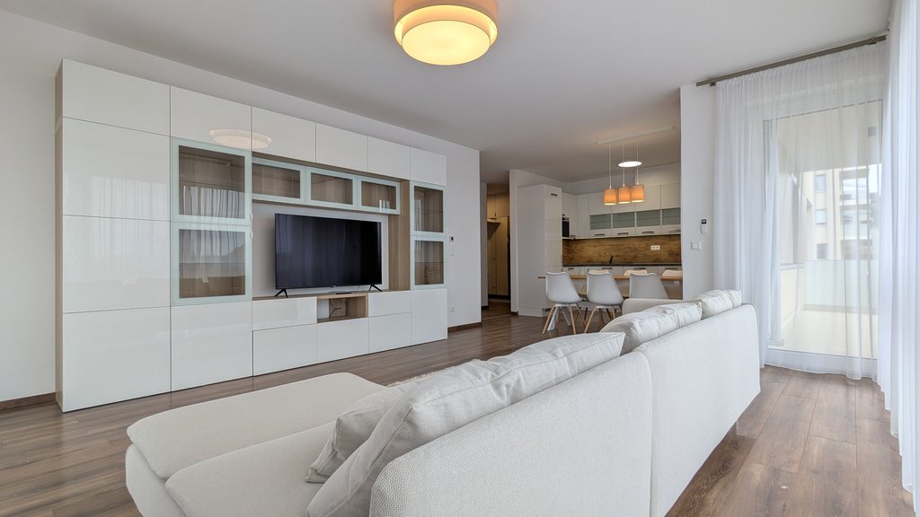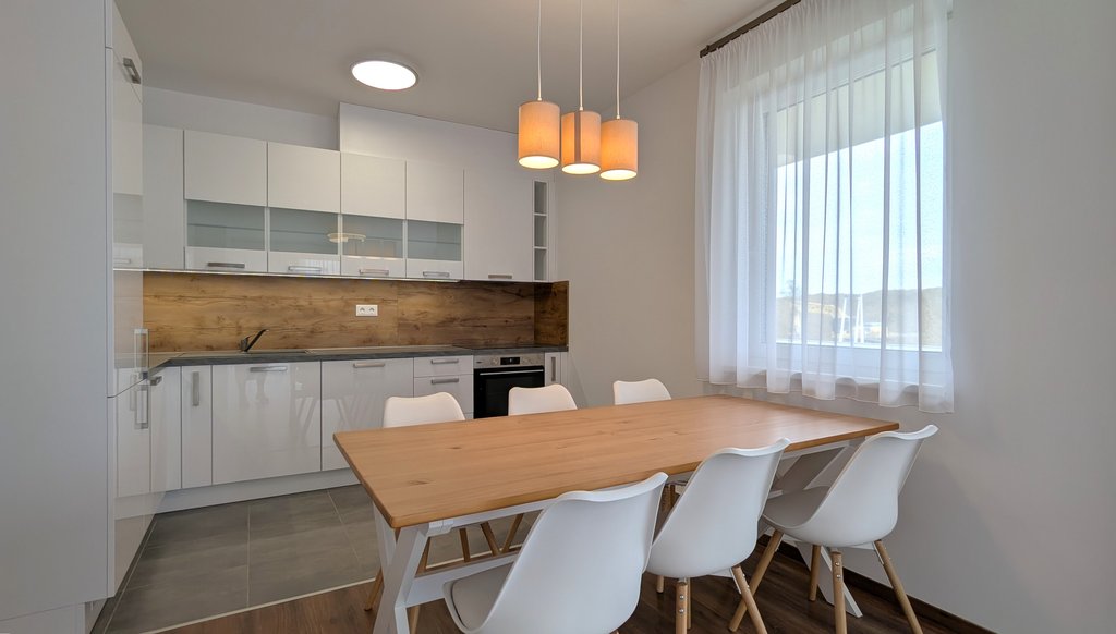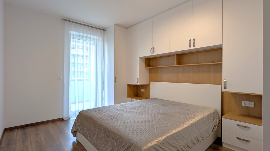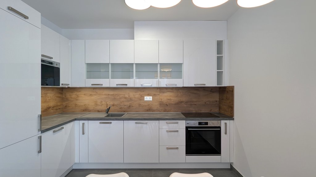 In the 11sth district, a modern, new, waiting for its new tenant- apartment is for rent. The 108 sqm, 1st floor property consists of 3 bedrooms, an open-style kitchen with a dining area and living room, two bathrooms (one with a shower, one with a bathtub), and a 24 sqm terrace. The property is air-conditioned and two cars can park in the underground garage. Electrical shutters are installed on all windows. The monthly rental fee of th egarages and th estorage is HUF 100.000.