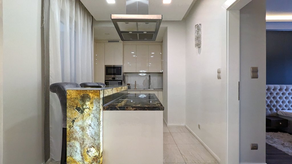 Recently renovated, exclusive, top floor apartment is for offer in the heart of the Downtown. The nicely furnished, modern property consists of an open plan kitchen with dining area and living room, a living room which can be used as a bedroom too, a separated bedroom, 2 bathrooms (one with bathub the other with shower) and a private 80 sqm rooftop terrace with amazing view over the city. The unique flat offers extras such as the top quality furniture and equipment, air-conditioner, alarm system, etc. The building with elevator has been renovated recently, so not just the cozy street, but also the building gives special charm for the area. In the nearby streets are many theatres, cafes and popular restaurants.