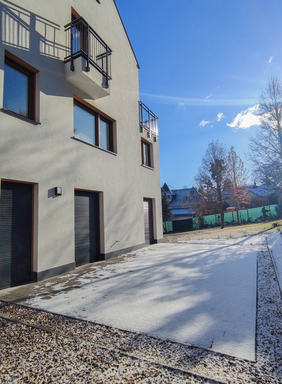 This modern ground floor, very sunny apartment is for rent in a newly built 4-apartment condominium. The 100 sqm consists of an open plan kitchen and livign room with access to a private 40 sqm garden terrace, 3 bedrooms, 2 bathrooms one with bathub and the other with shower. The rental fee includes the common cost as well. The apartment is available without furniture, but there are several built-in closets, as well as an alarm and ceiling cooling and heating system. In the underground garage there is parking for two cars (it is also possible to charge an electric car) and an 8 sqm storage room also belongs to the property.