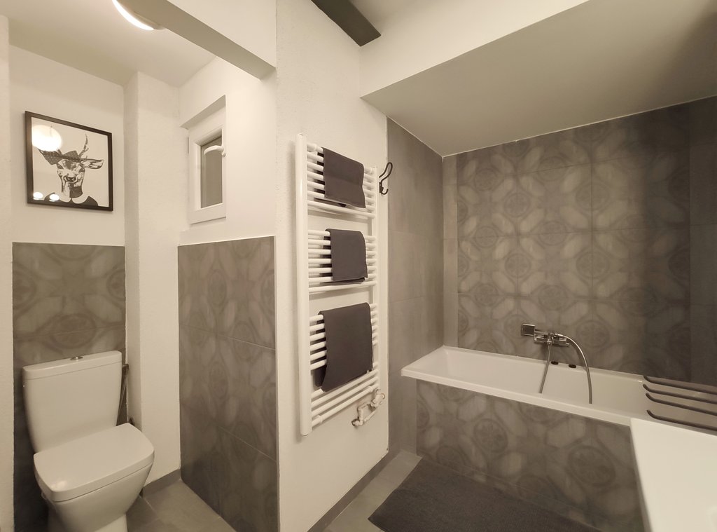 Recently refurbished, 70sqm, fully furnished LOFT style apartment is for rent in the 6th district, in the heart of Budapest at the Pest Broadway. Thanks to the carefully set up renovation with top quality materials, the property is absolutely stylish but at the same time also comfortable and employs smart architectural solutions. The flat centers around a lovely spacious living room with 5 meter ceiling, and it also consists of a fully equipped American style kitchen with dining area, a master bedroom, a bathroom with bathtub. Last but not least you can find an extra loft level with a room suitable for guest room or study with its private wardrobe and bathroom with shower. As the apartment is facing to the courtyard, it is really quiet, and completely isolated from the noise of the neighboring streets. It is definitely not only a dwelling but a real home!