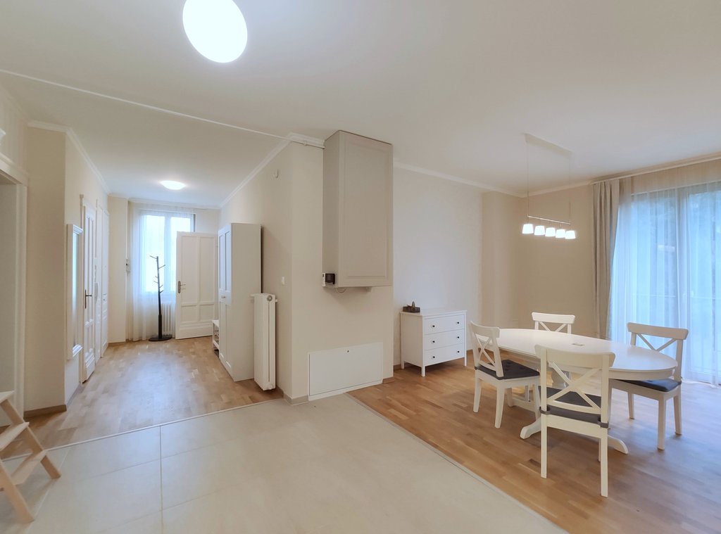 Pasarét egyik legszebb utcájában kiadó egy első emeleti, 86 nm-es lakás. Az ízlésesen felújított ingatlanban kialakításra került egy amerikai konyhás nappali és étkező, 2 hálószoba, zuhanyzós fürdőszoba és vendégmosdó, valamint két erkély is. A lakás rendkívül csendes és napfényes, jelenleg részben bútorozott, légkondicionált és riasztóval felszerelt. Az közös használatú kertben egy autó számára biztosított a parkolás. Az utca végén bevásárlóközpont, busz és villamos megálló elérhető.